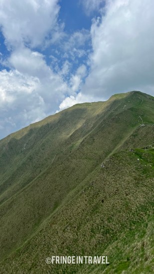 La cresta in realtà dura poco, un 20/30 minuti, poi si inizia a scendere e si può andare abbastanza spediti. La discesa è agevole.