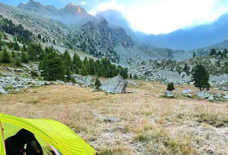 Il freddo notturno è reale. Anche ad agosto, dormire in tenda a 2.500 metri significa svegliarsi con la condensa ghiacciata sulla tenda. Serve attrezzatura seria.